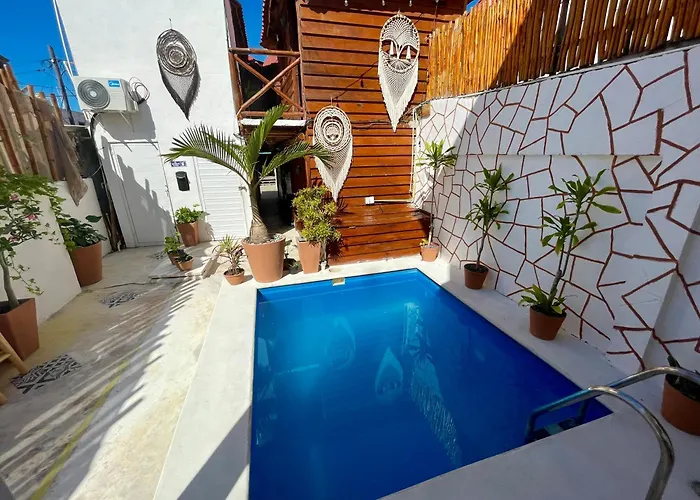 Hotel Boutique Naj Casa Holbox se encuentra a 5 minutos caminando de la Isla Holbox y cuenta con una caja fuerte y seguridad las 24 horas. Situado a un par de minutos en coche de la Punta Cocos, este hotel ofrece vistas al jardín y una piscina exterior.